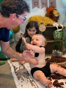 As little Oscar turns 1, the girls dote over him during a woodland walk…. Look at Macy’s face on his Cake Smash photo!
